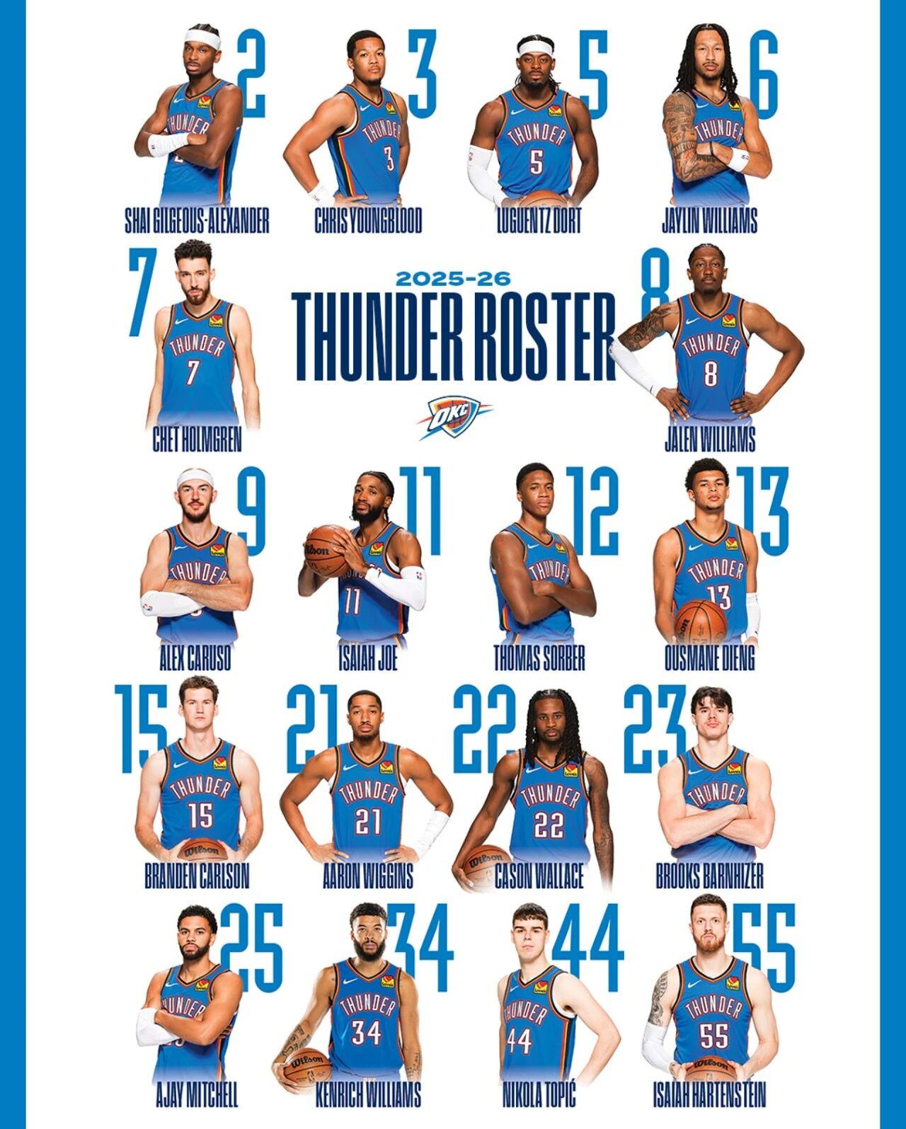 2025-26賽季NBA常規(guī)賽進(jìn)行了1/4的賽程,衛(wèi)冕冠軍俄克拉荷馬雷霆隊(duì)僅僅輸過(guò)一場(chǎng)比賽,20勝1負(fù)。