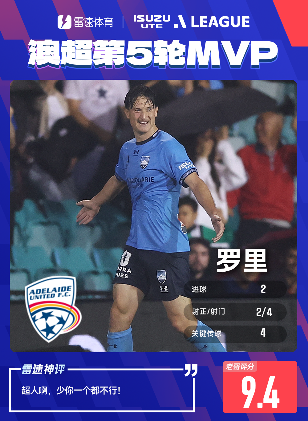 雷速澳超評(píng)選:雙響助球隊(duì)登頂榜首,羅里當(dāng)選第5輪MVP