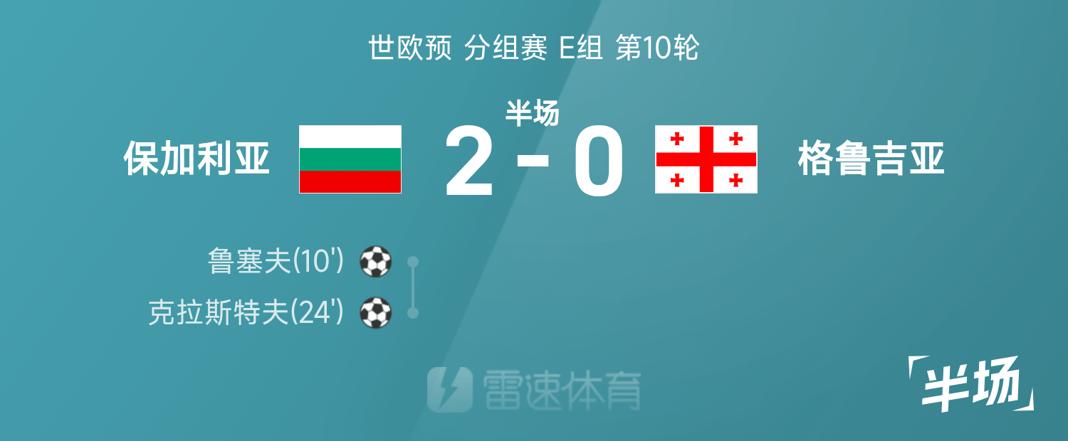 世歐預(yù)半場:魯塞夫、克拉斯特夫破門,保加利亞2-0格魯吉亞
