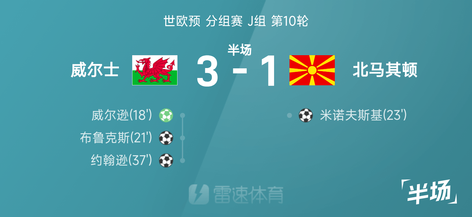 雷速體育11月19日訊 26賽季世歐預(yù)分組賽J組第10輪,威爾士迎戰(zhàn)北馬其頓。