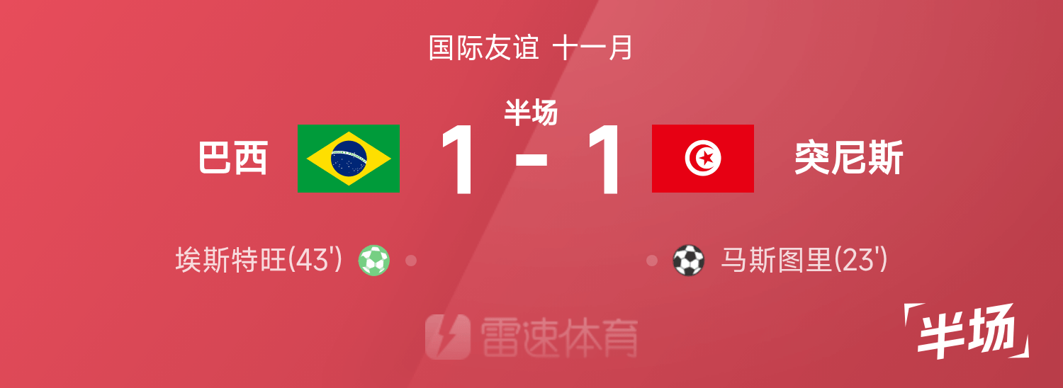 雷速體育11月19日訊 25賽季國際友誼十一月,巴西迎戰(zhàn)突尼斯。