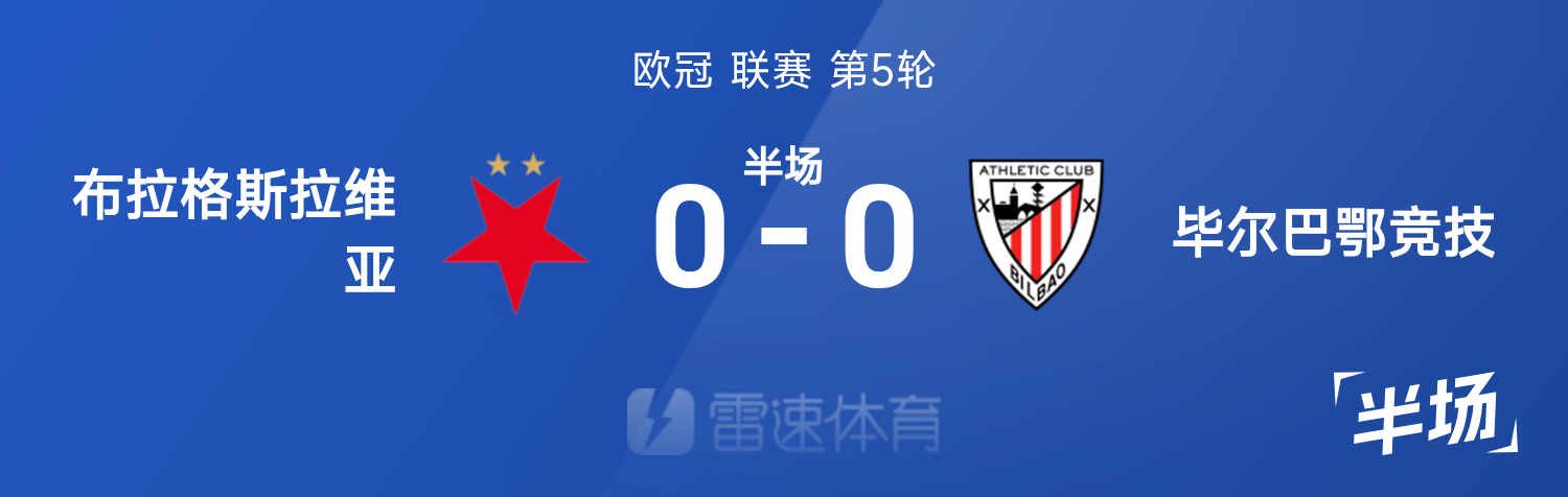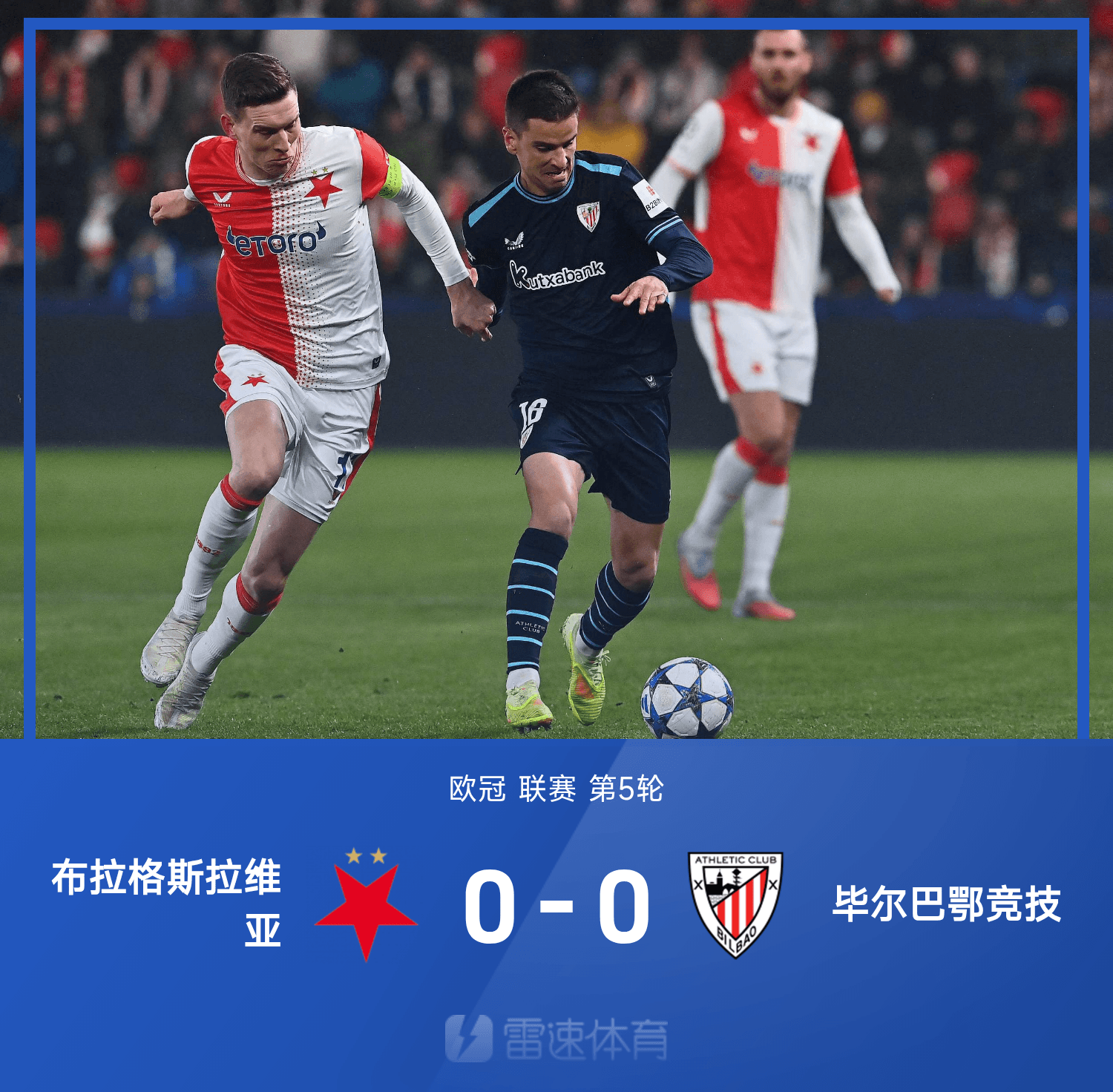 雷速體育11月26日訊 25/26賽季歐冠聯(lián)賽第5輪,布拉格斯拉維亞0-0互交白卷悶平畢爾巴鄂競(jìng)技。