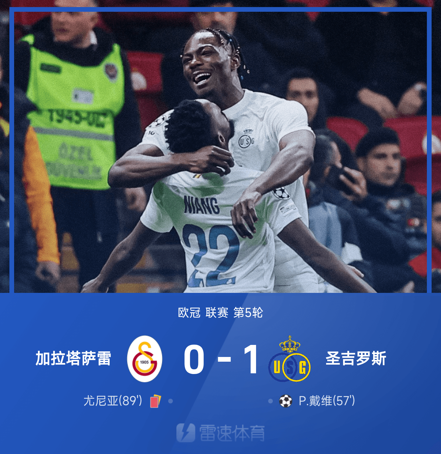 雷速體育11月26日訊 25/26賽季歐冠聯(lián)賽第5輪,圣吉羅斯1-0戰(zhàn)勝加拉塔薩雷。