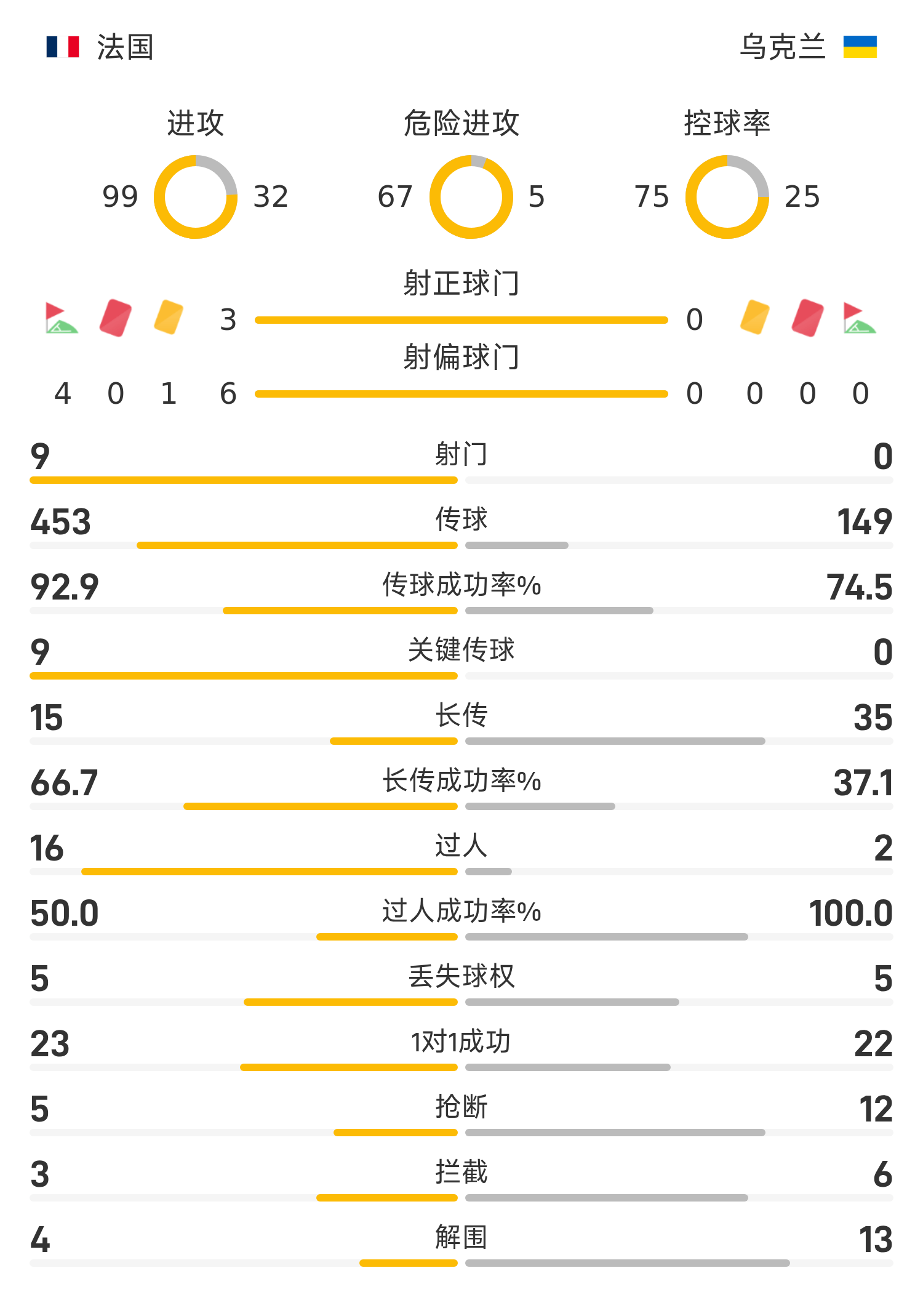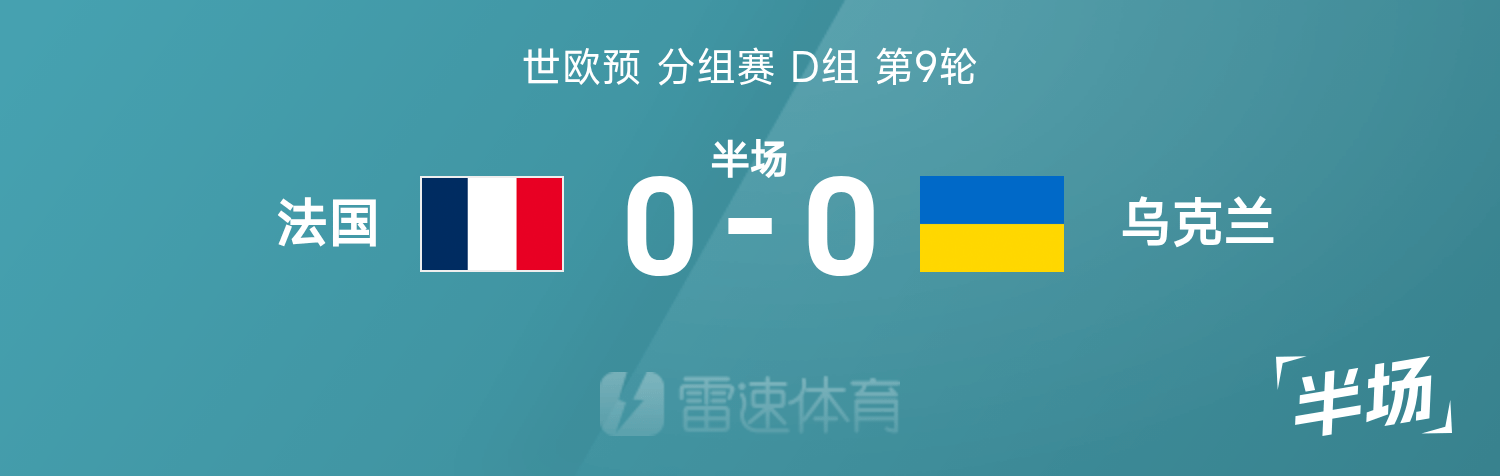 雷速體育11月14日訊 26賽季世歐預(yù)分組賽D組第9輪,法國(guó)迎戰(zhàn)烏克蘭。半場(chǎng)戰(zhàn)罷,雙方比分暫為法國(guó)0-0烏克蘭。