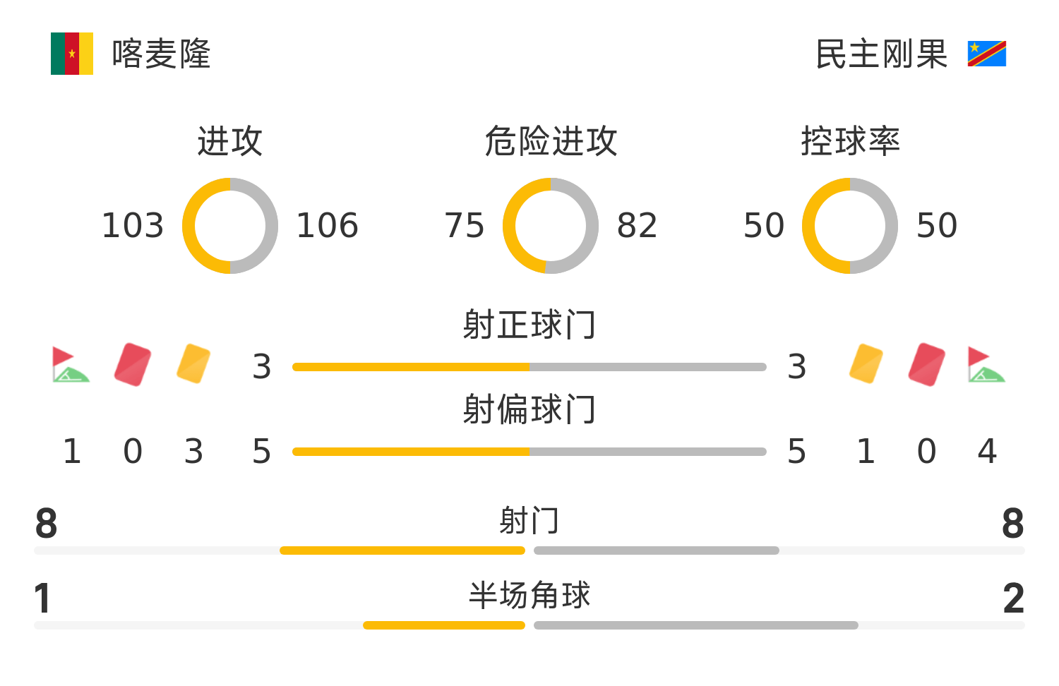 雷速體育11月14日訊 26賽季世非預(yù)半決賽,民主剛果1-0戰(zhàn)勝喀麥隆,姆本巴第90+1分鐘上演絕殺??溌∈婪穷A(yù)半決賽出局,無(wú)緣美加墨世界杯。