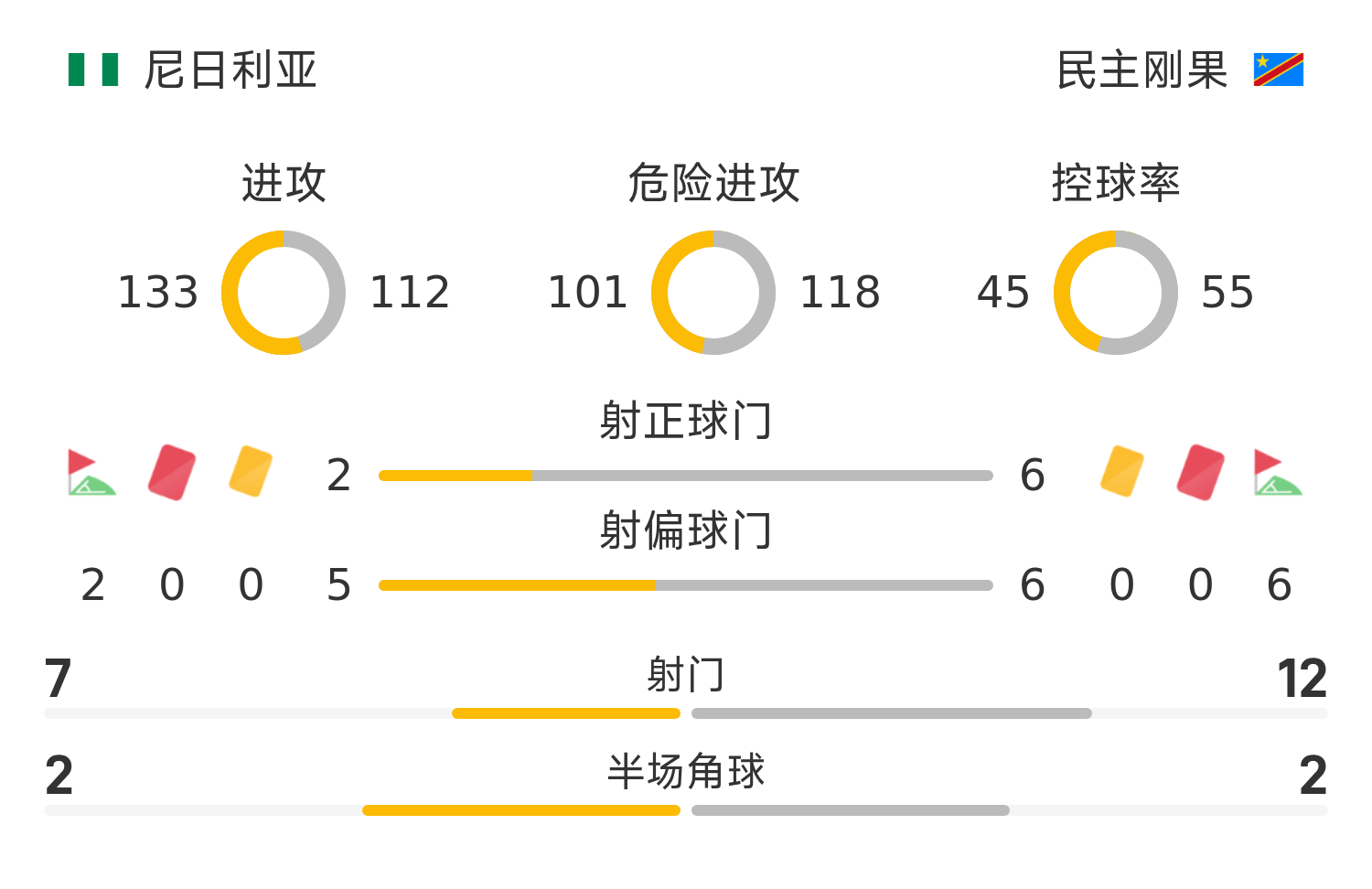 32’后衛(wèi)失誤送禮,伊利亞后點(diǎn)包抄破門,民主剛果1-1尼日利亞