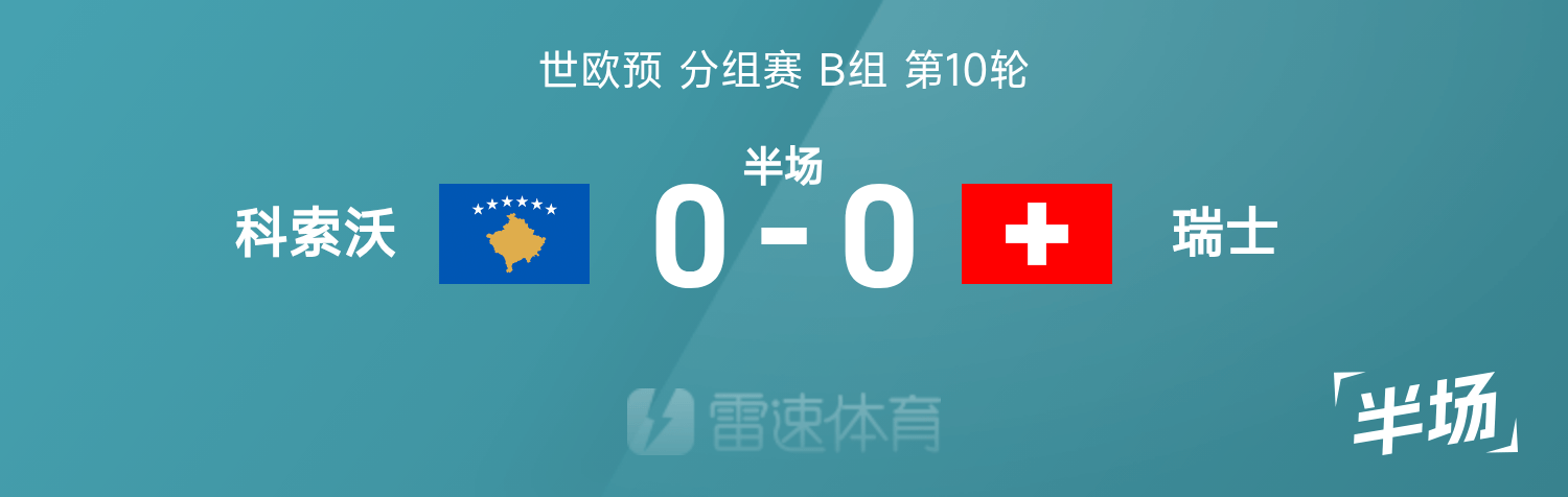雷速體育11月19日訊 26賽季世歐預(yù)分組賽B組第10輪,科索沃迎戰(zhàn)瑞士。半場戰(zhàn)罷,雙方比分暫為科索沃0-0瑞士。