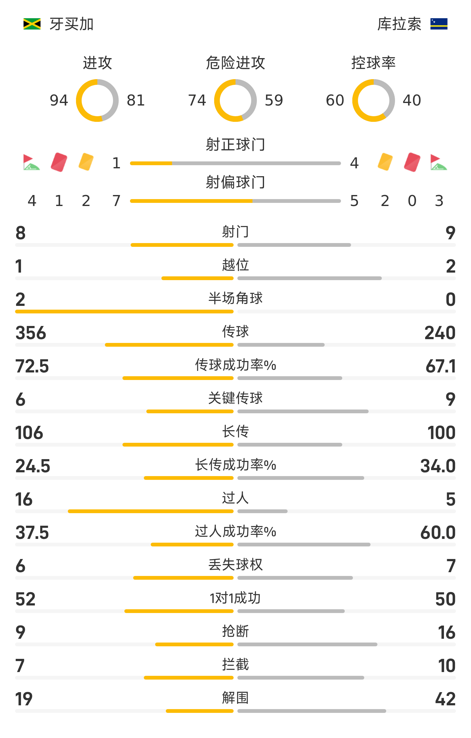 雷速體育11月19日訊 世中北美預第三階段B組第6輪,牙買加主場迎戰(zhàn)庫拉索。此役上半場,雙方均未破門。易邊再戰(zhàn),利治、尼克斯森及卡達馬特里先后射門中柱,安東尼斯進球被吹,拉塞爾終場前染紅被罰下,裁判補時階段觀看VAR取消牙買加點球。全場比賽結束,庫拉索0-0戰(zhàn)平牙買加,6戰(zhàn)3勝3平拿到12分鎖定該組頭名,隊史上首次晉級世界杯。
