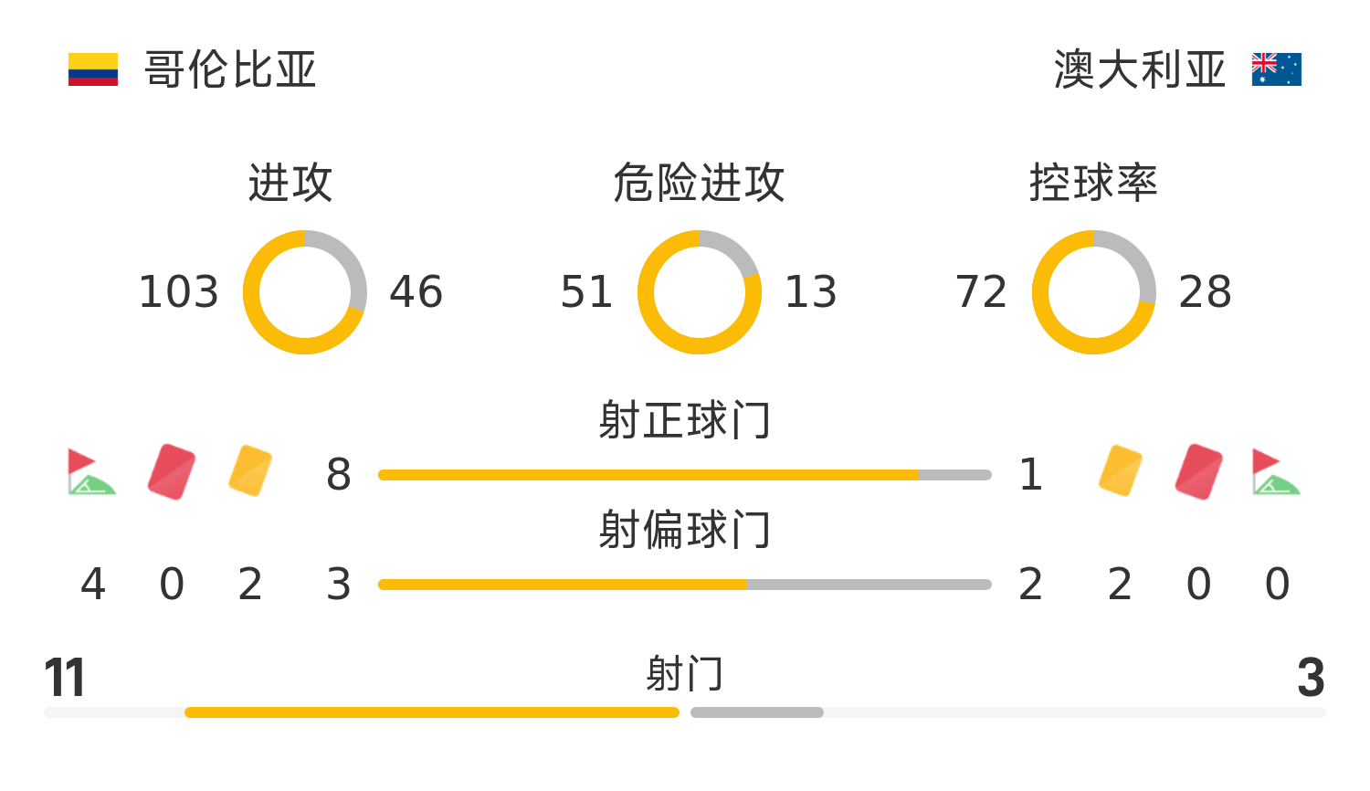 雷速體育11月19日訊 25賽季國際友誼十一月,哥倫比亞3-0戰(zhàn)勝澳大利亞。上半場,兩隊均無建樹;下半場,J羅點射為哥倫比亞打破僵局,隨后迪亞斯擴(kuò)大了領(lǐng)先優(yōu)勢,萊爾馬補(bǔ)時鎖定勝局,最終哥倫比亞3-0戰(zhàn)勝澳大利亞。