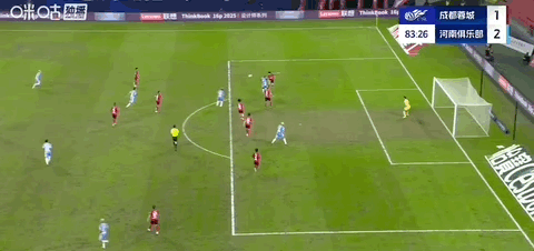 第83分鐘,納薩里奧打門被封出,何超外圍不作調整直接抽出一記世界波,劉殿座鞭長莫及!2-1!河南反超了比分!