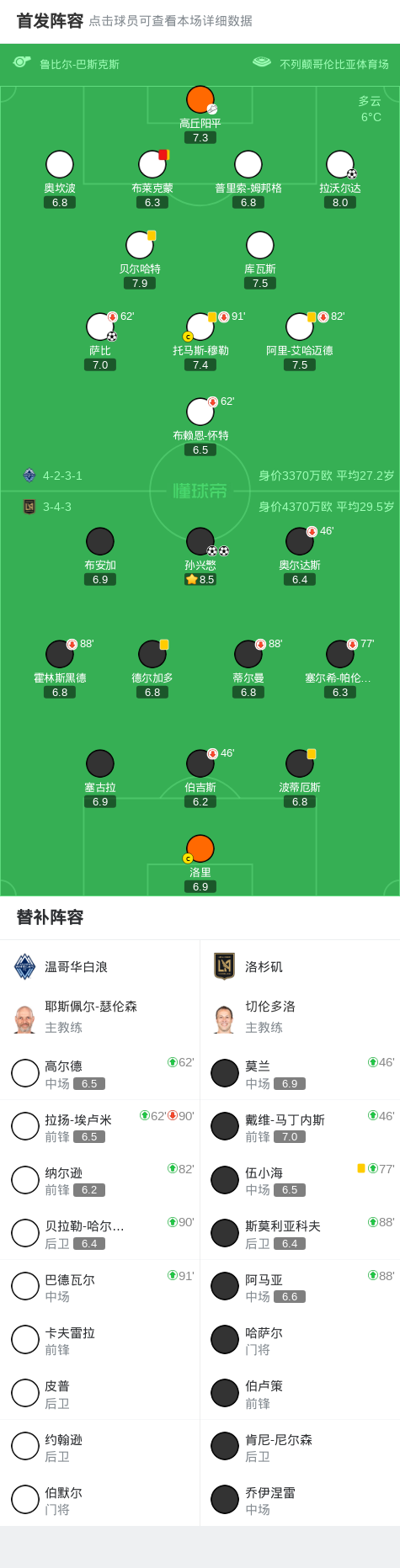 第90+6分鐘,孫興慜任意球直接破門(mén)扳平比分,洛杉磯2-2