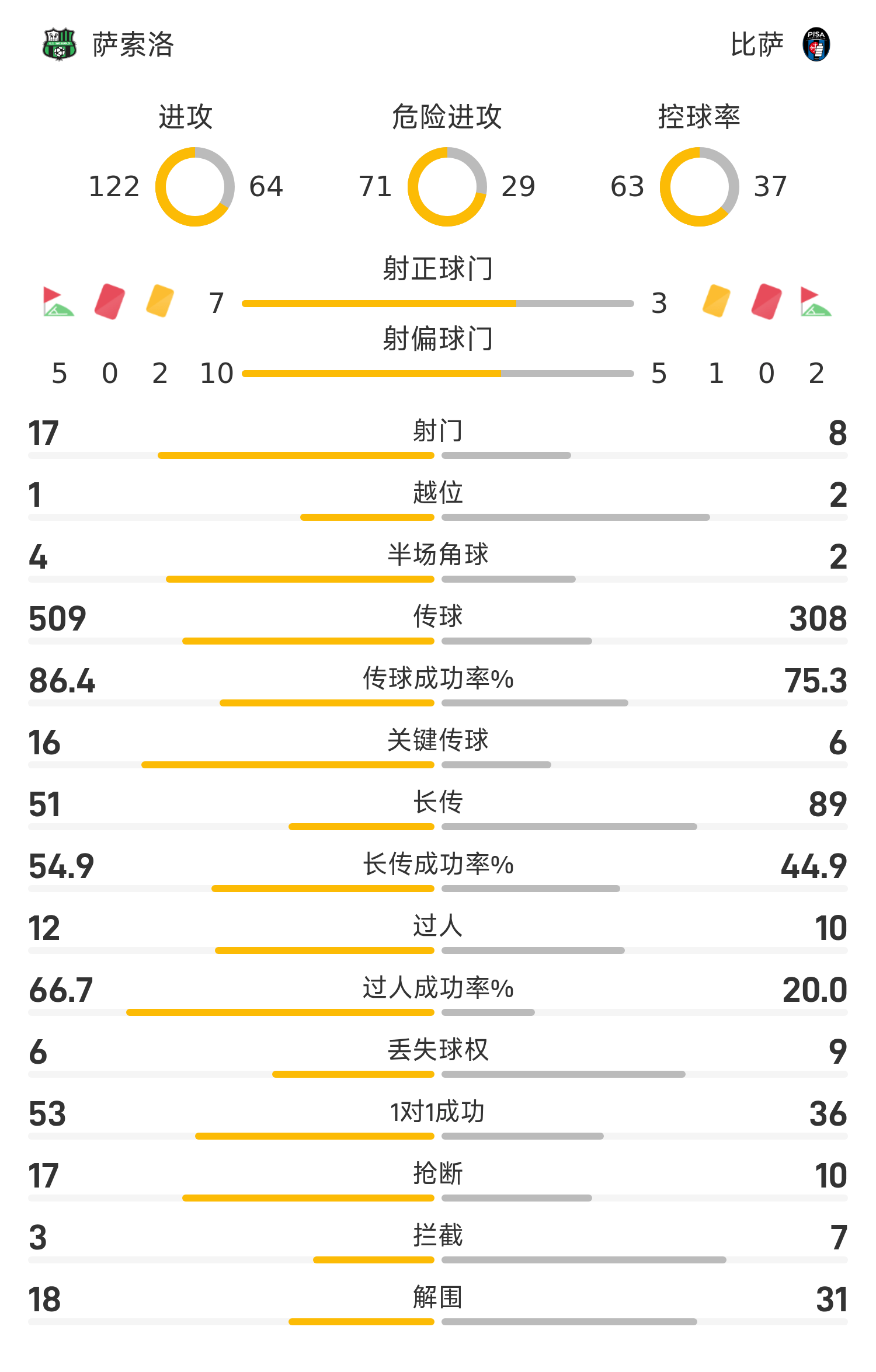 81’莫雷諾助攻,邁斯特長(zhǎng)途奔襲禁區(qū)勁射破門,比薩2-1薩索洛