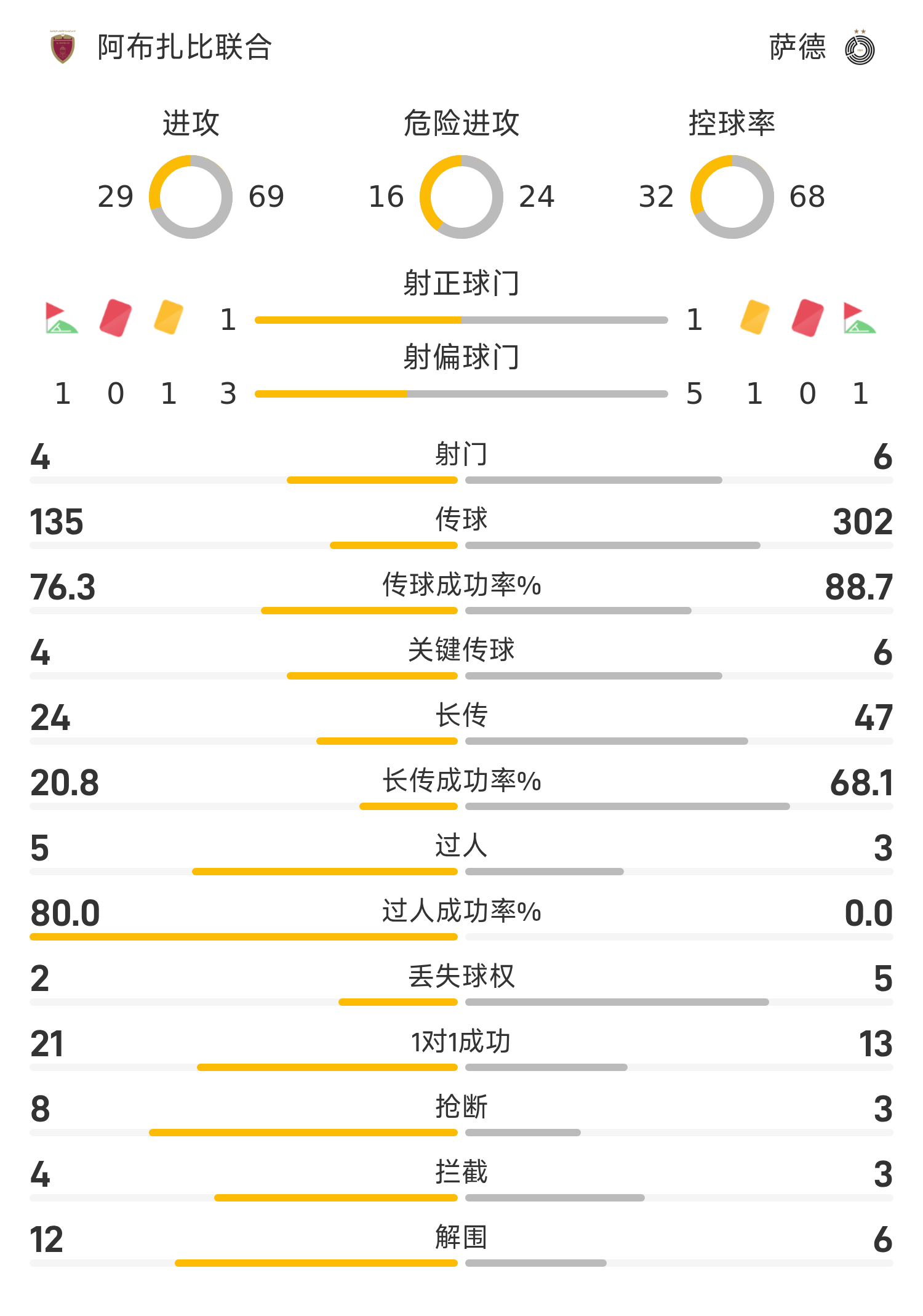 45+3’祖希爾禁區(qū)手球造點(diǎn),克勞迪諾破門,薩德1-0阿布扎比聯(lián)合