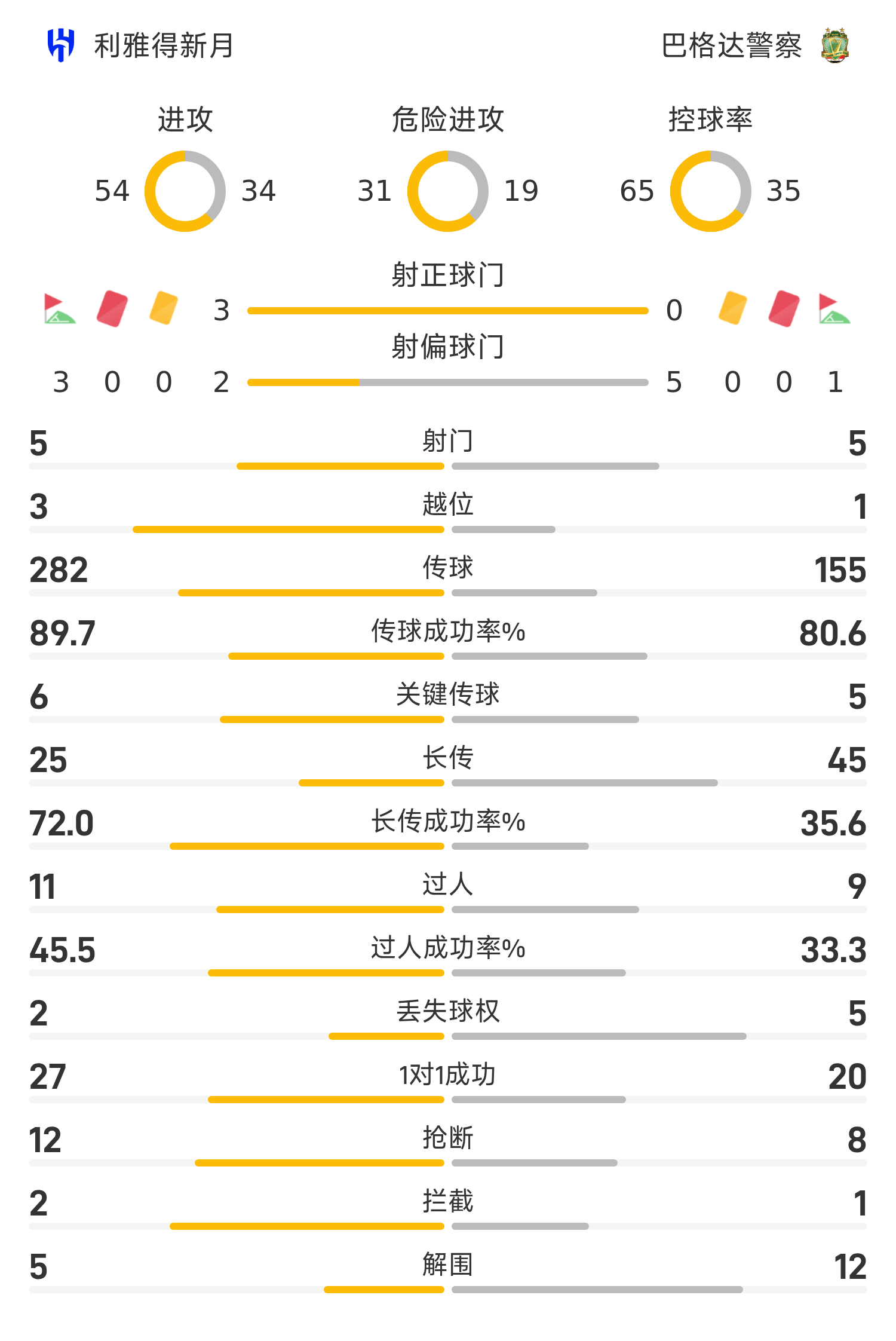 45’馬爾科姆傳中,萊昂納多頭球破門,利雅得新月1-0巴格達(dá)警察
