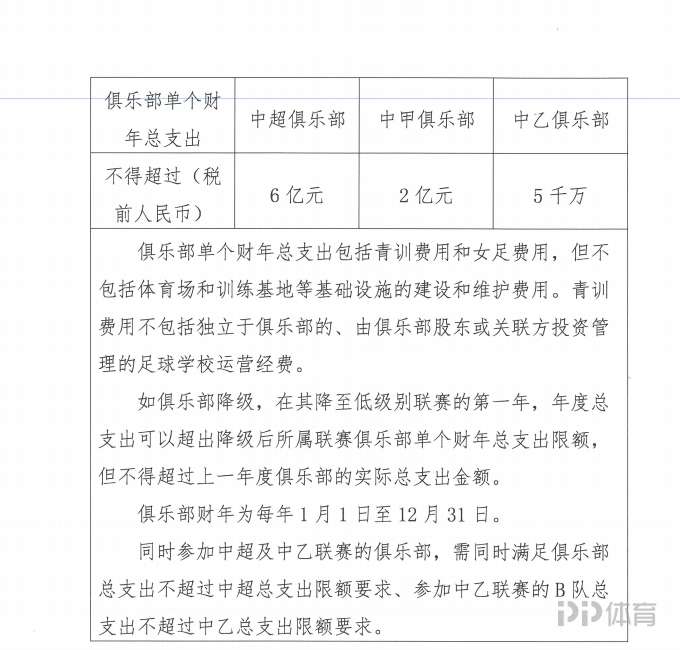 中足聯(lián)印發(fā)就三級(jí)聯(lián)賽財(cái)務(wù)指標(biāo):中超俱樂(lè)部單個(gè)財(cái)年總支出不得超過(guò)稅前6億、中甲2億、中乙5千萬(wàn)。