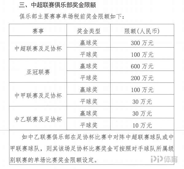 今日中足聯(lián)印發(fā)三級聯(lián)賽財務(wù)指標(biāo),其中包含俱樂部獎金限額。中超球隊聯(lián)賽單場贏球獎金不得超過300萬元。