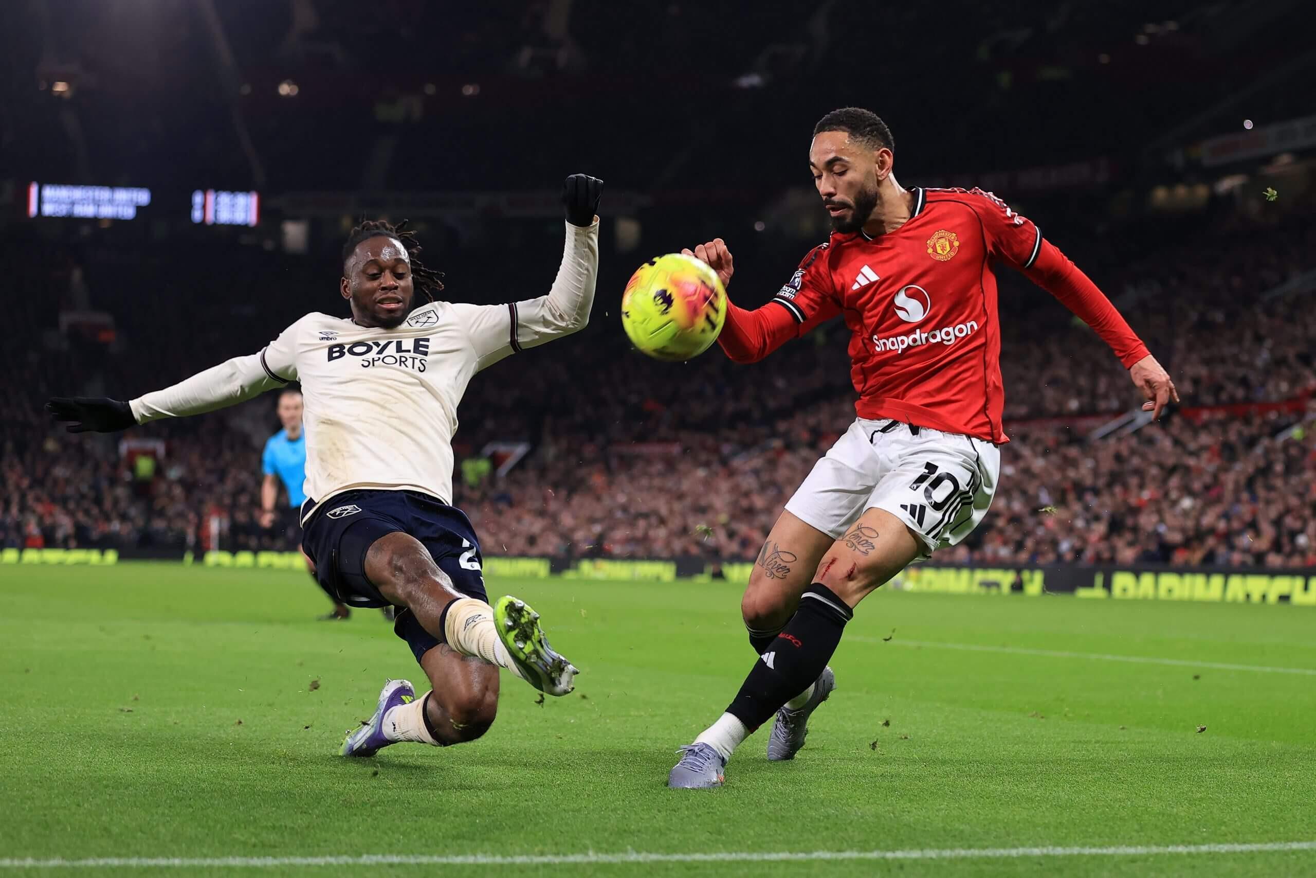這位26歲的球員常遭球迷批評,但這次他的第一下觸球穩(wěn)穩(wěn)停住了卡塞米羅的射門,隨后第二下便巧妙地將球送過了阿雷奧拉。很少有英超主教練會鼓勵自己的左翼衛(wèi)在場上占據(jù)這樣的位置,但阿莫林的戰(zhàn)術(shù)思路在此結(jié)出果實。作為隊內(nèi)速度較快的成員之一,達洛特是執(zhí)行這種頗具雄心的打法的合適人選。