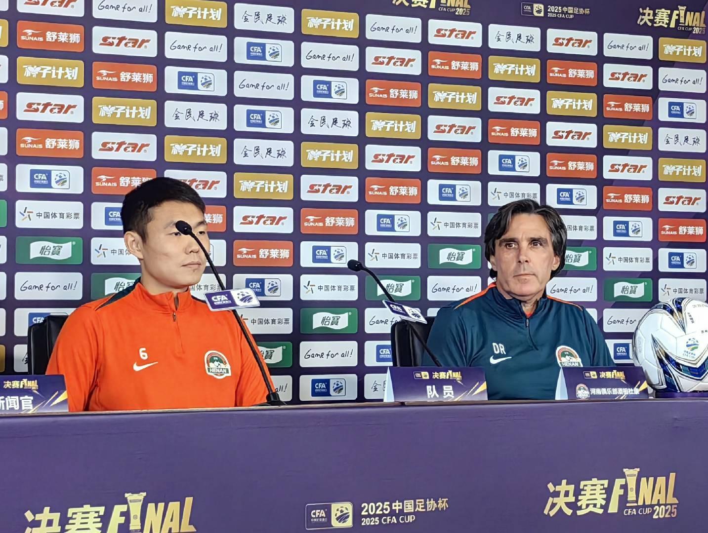 北京時(shí)間12月5日,2025中國(guó)足協(xié)杯決賽賽前新聞發(fā)布會(huì)在蘇州奧體中心舉行。河南隊(duì)主教練丹尼爾-拉莫斯攜球員王上源出席。