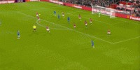 第二球,就是清晰的戰(zhàn)術(shù)準(zhǔn)備的結(jié)果,因?yàn)樵趤淼角皥龅穆飞?,你可以清晰看到是塞門約在一路跟防盧克-肖,他和身后的右后衛(wèi)在執(zhí)行嚴(yán)格的人盯人: