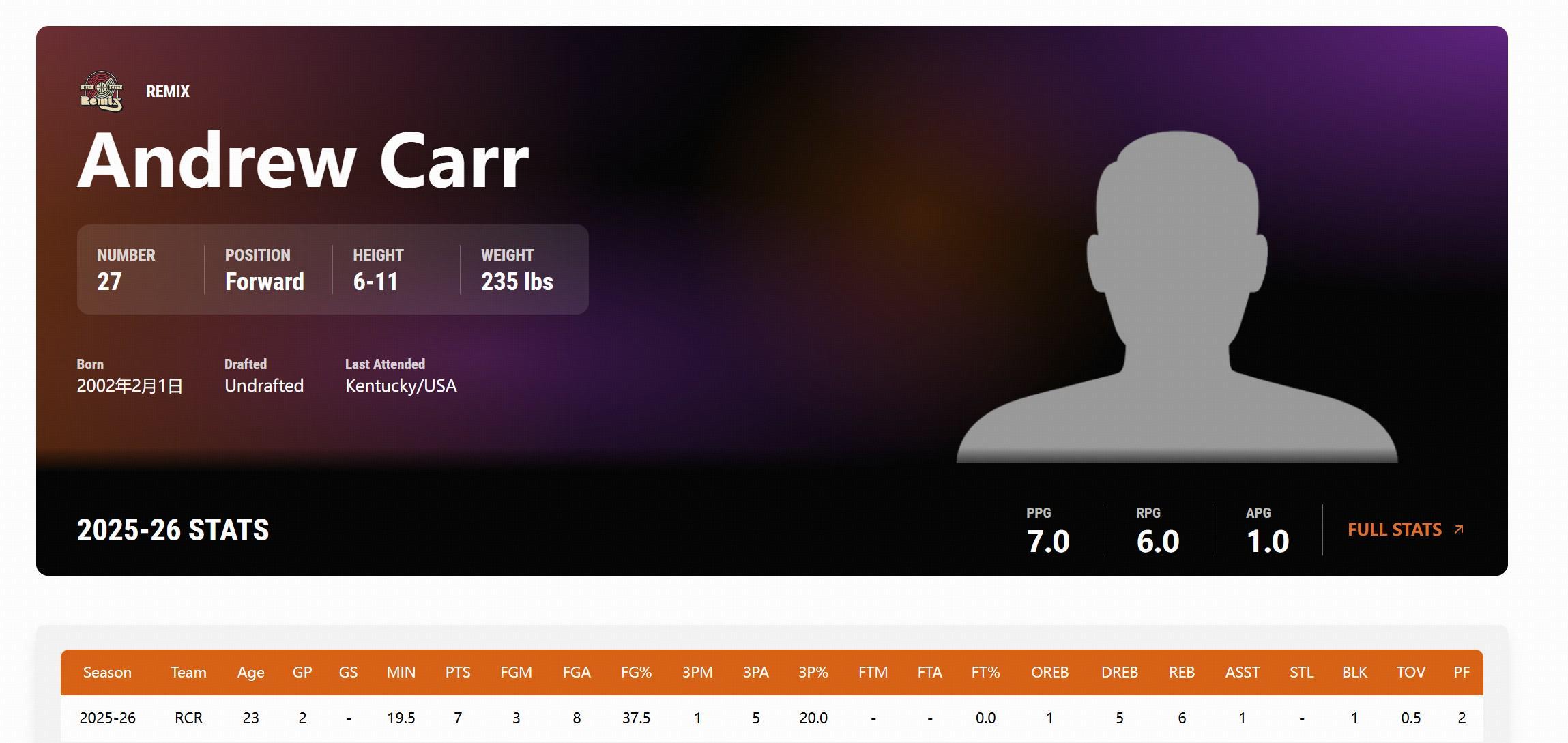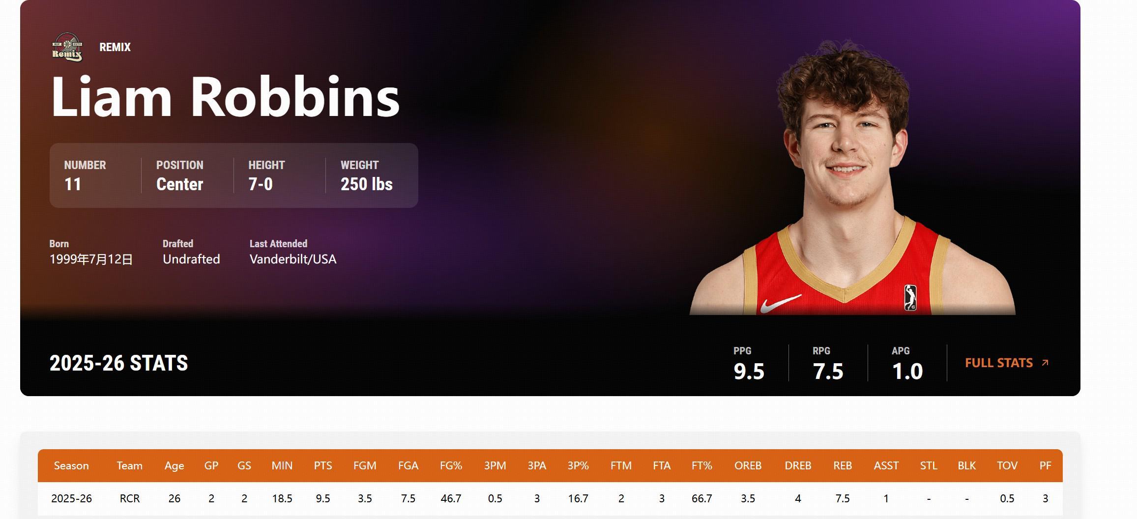球隊(duì)的內(nèi)線方面,身高2米13的羅賓斯和身高2米08的空間型內(nèi)線安德魯-卡爾是球隊(duì)的主要輪換。但從出場時(shí)間能看出來,混音隊(duì)的大部分時(shí)間也是在打小個(gè)陣容,這兩位中鋒的平均出場時(shí)間也僅在20分鐘左右。