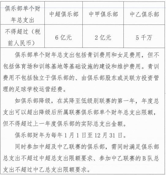 中國(guó)職業(yè)聯(lián)賽財(cái)務(wù)指標(biāo):中超俱樂部單個(gè)財(cái)年支出不能超過6億元