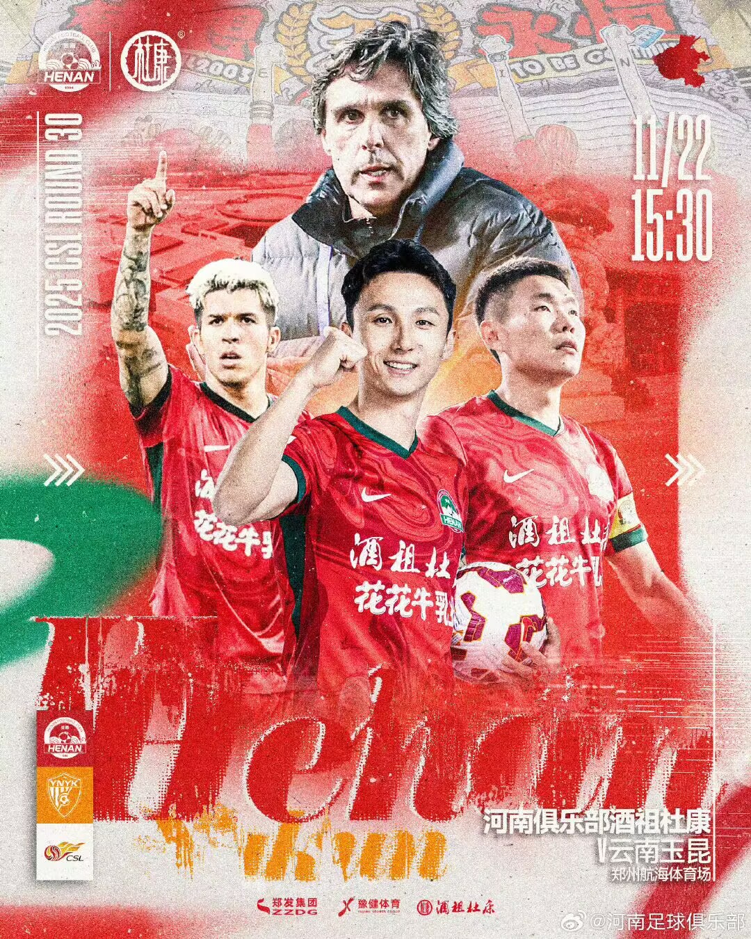 雷速體育11月22日訊 北京時間11月22日15時30分,中超末輪,河南隊主場迎戰(zhàn)云南玉昆。