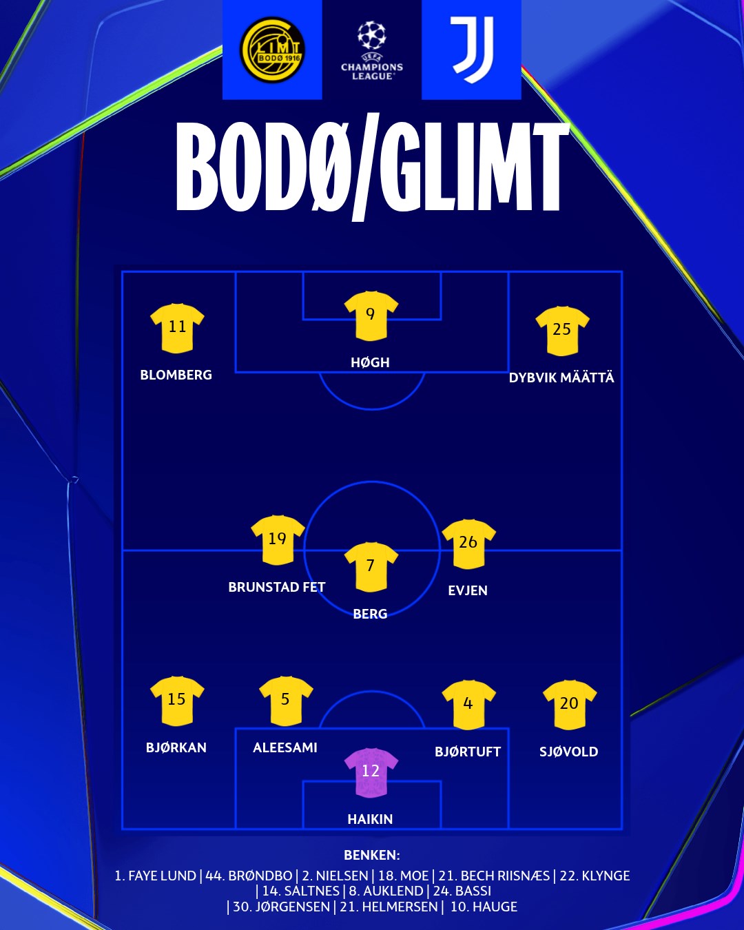 北京時(shí)間11月26日凌晨4:00,25/26賽季歐冠聯(lián)賽第5輪,博德閃耀主場(chǎng)迎戰(zhàn)尤文圖斯,賽前首發(fā)公布。