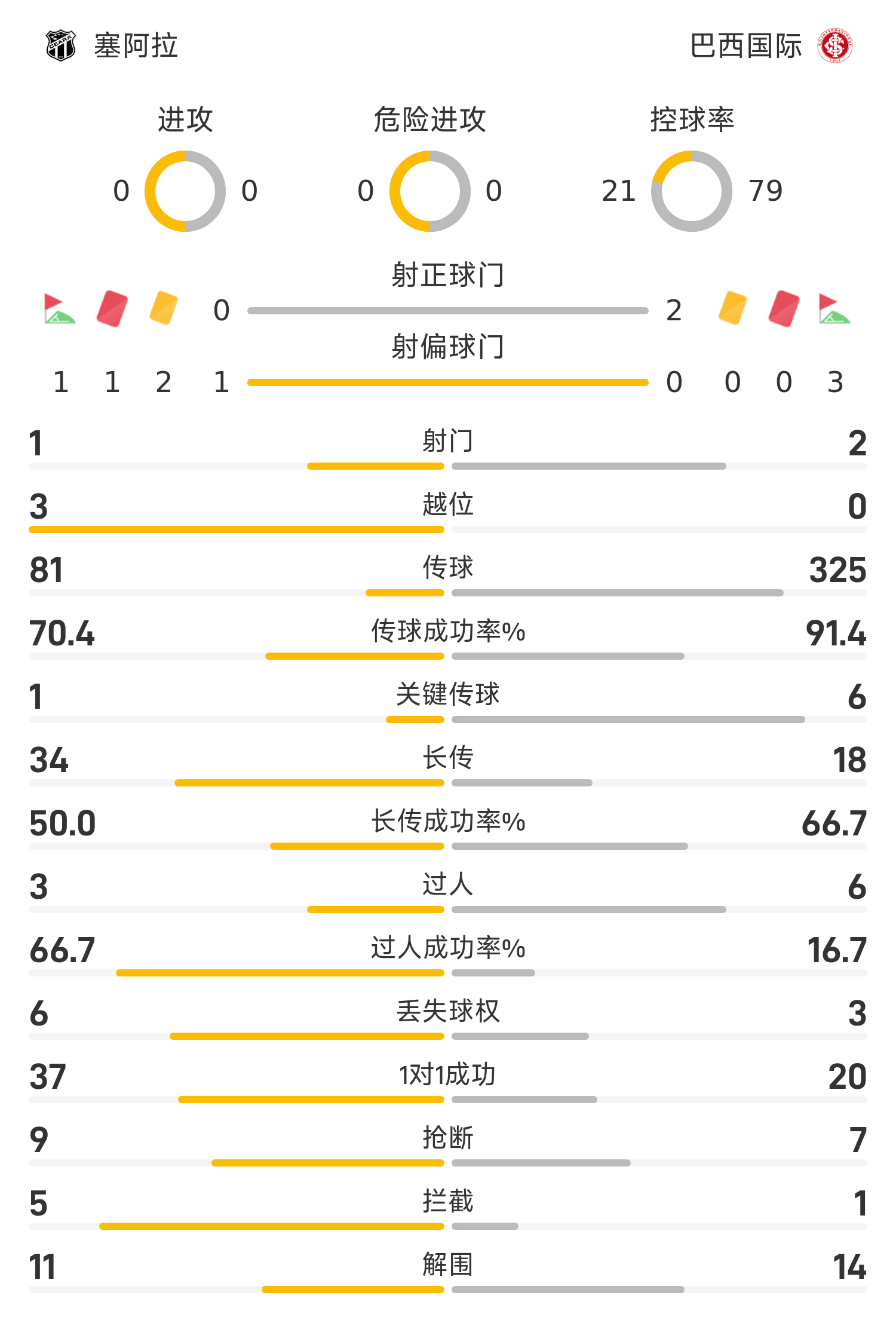 巴西國際首發(fā)陣容:12-伊萬、25-梅爾卡多、4-維特奧、15-戈麥斯、26-伯納比、10-帕特里克、17-塔巴塔、14-羅德里格斯、28-維迪尼奧、39-阿基諾、19-博雷