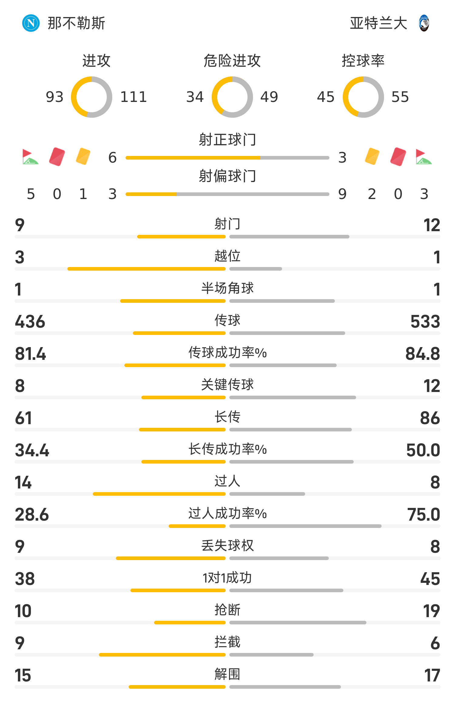 雷速體育11月23日訊 25/26賽季意甲聯(lián)賽第12輪,那不勒斯3-1戰(zhàn)勝亞特蘭大。上半場比賽,內(nèi)雷斯梅開二度,朗半場結(jié)束前再入一球,那不勒斯半場便取得三球領(lǐng)先。易邊再戰(zhàn),斯卡馬卡于第52分鐘扳回一城。但余下的比賽時間內(nèi),兩隊均未能再改寫比分,最終亞特蘭大客場不敵那不勒斯,聯(lián)賽8輪不勝。