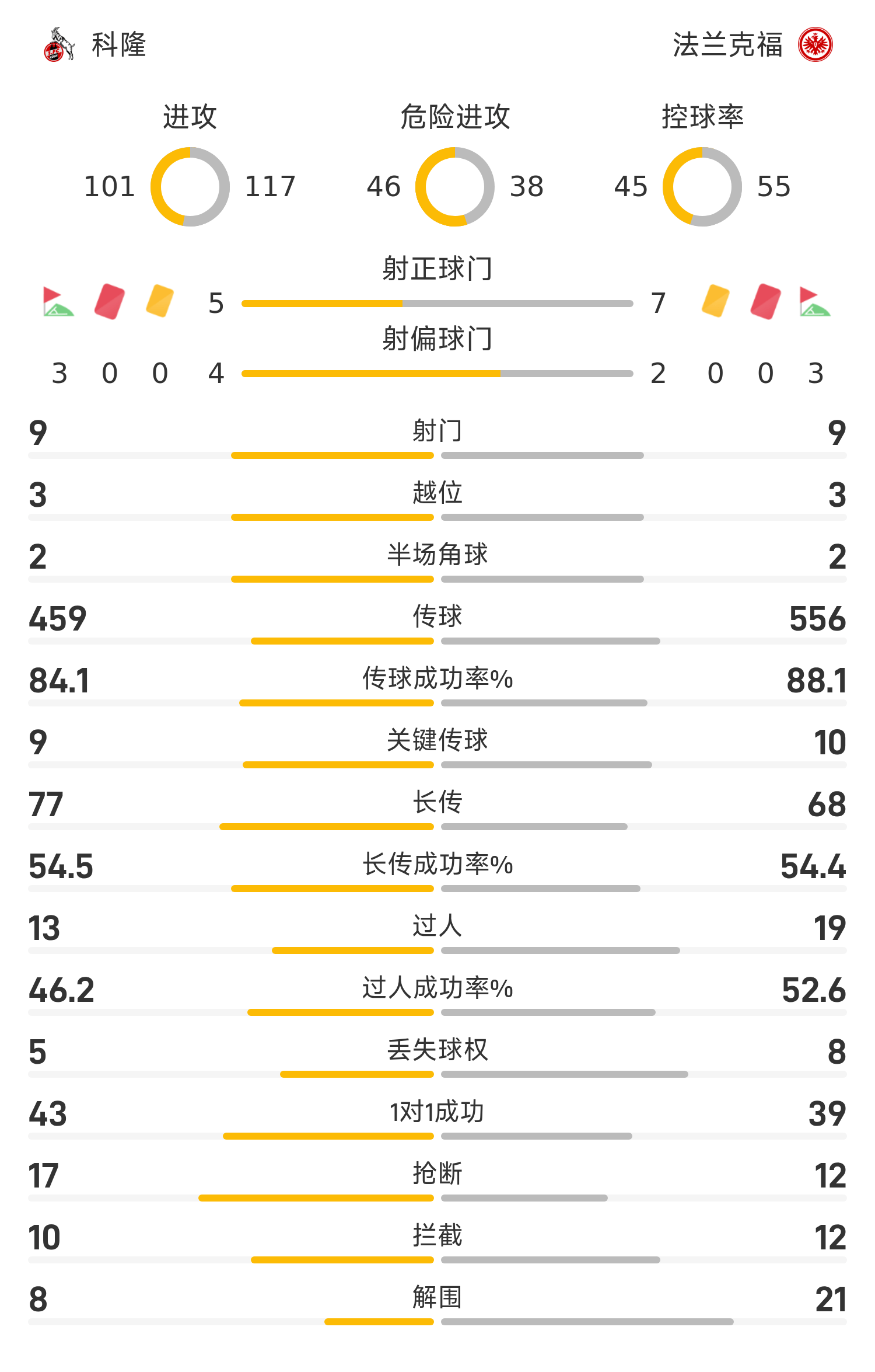 63’伯克特禁區(qū)內(nèi)游龍破門,法蘭克福4-1科隆