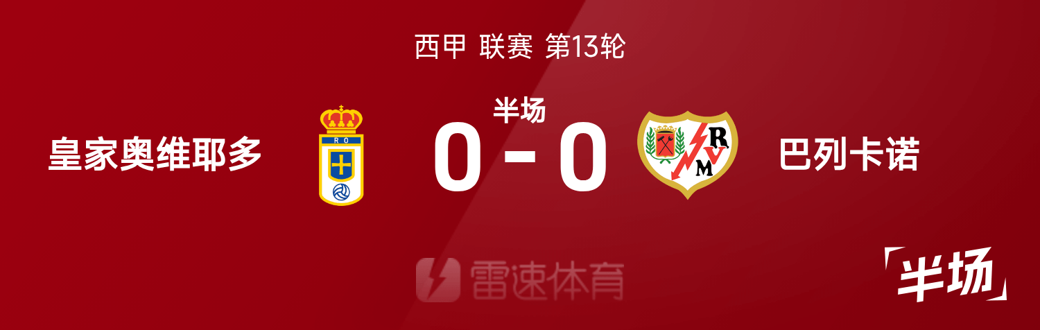 雷速體育11月23日訊 25/26賽季西甲聯(lián)賽第13輪,皇家奧維耶多迎戰(zhàn)巴列卡諾。半場戰(zhàn)罷,雙方比分暫為皇家奧維耶多0-0巴列卡諾。