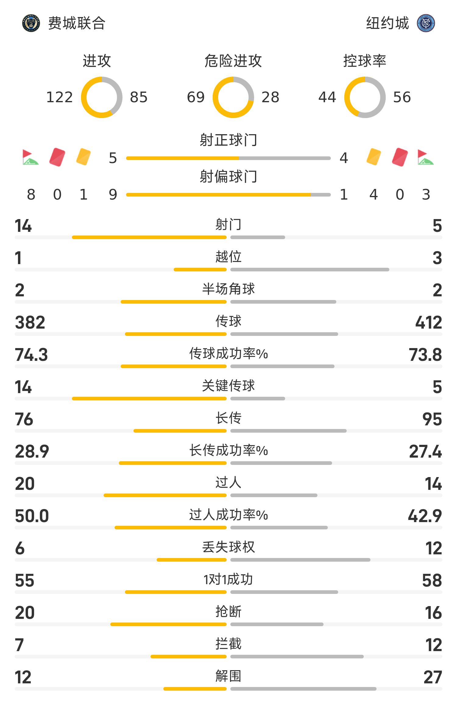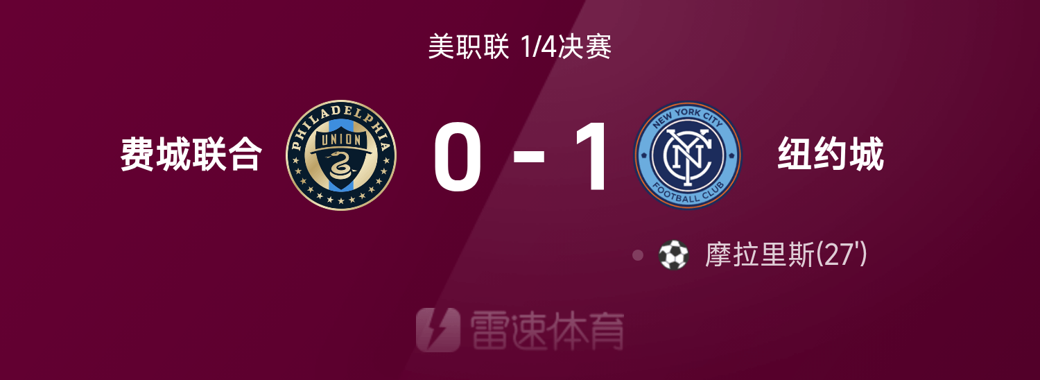 雷速體育11月24日訊 25賽季美職聯(lián)1/4決賽,紐約城1-0戰(zhàn)勝費(fèi)城聯(lián)合。全場(chǎng)比賽,摩拉里斯破門(mén)建功。作為常規(guī)賽第一,費(fèi)城聯(lián)合被淘汰出局。而東部決賽,紐約城將對(duì)陣梅西領(lǐng)銜的邁阿密?chē)?guó)際。