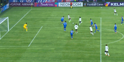第9分鐘,阿蘇埃傳中制造威脅,路易斯中路包抄被權田修一干擾