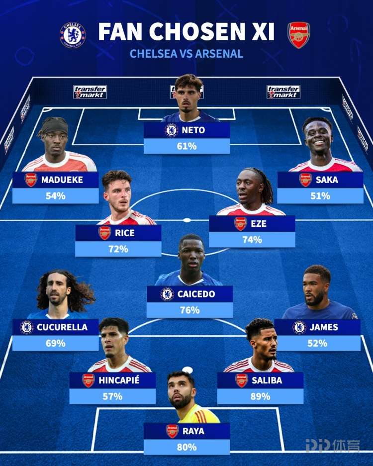 德轉球迷票選切爾西+阿森納陣容(不包括缺席球員):