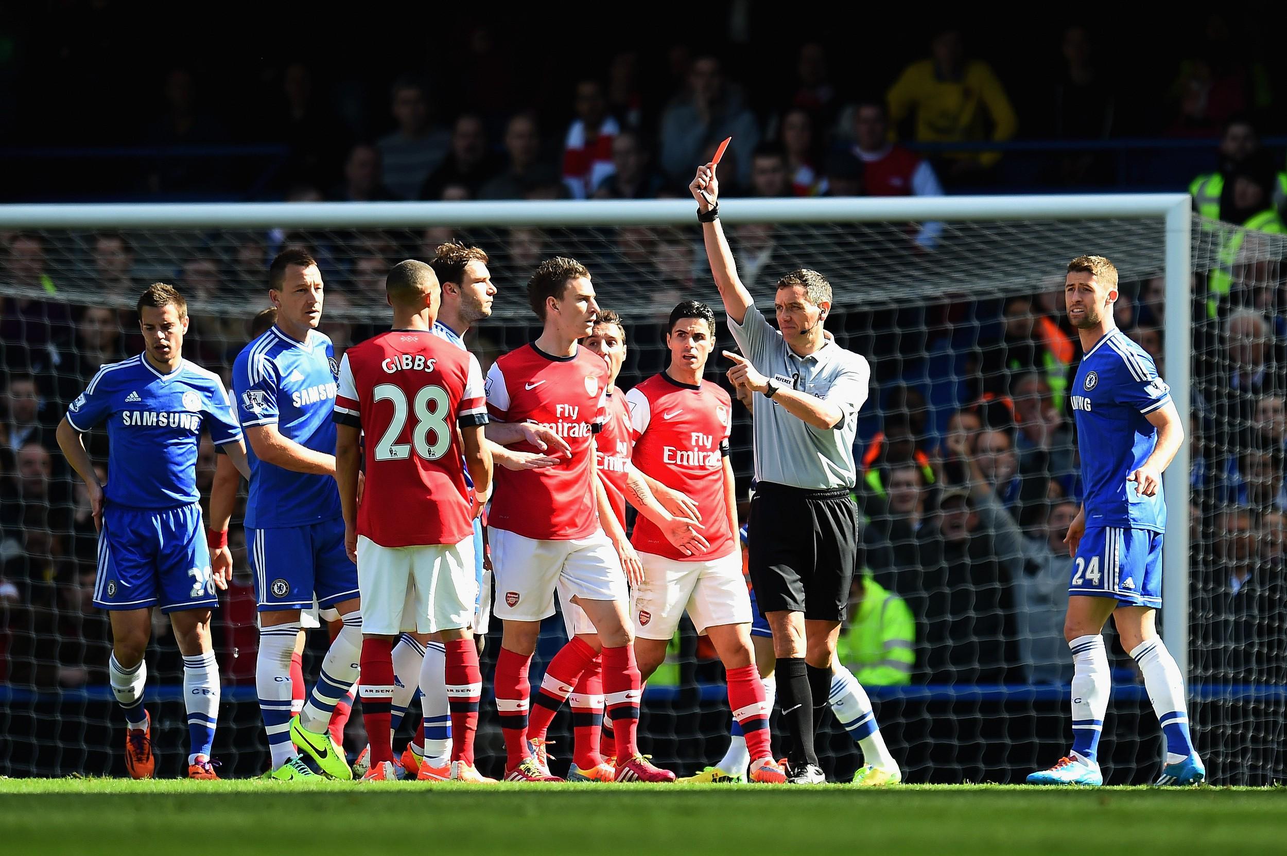 2014年3月22日,英超第31輪,切爾西6-0大勝阿森納。第15分鐘,張伯倫禁區(qū)內(nèi)手球犯規(guī),但當(dāng)值主裁判馬里納卻罰下了與張伯倫長相相近的吉布斯,并且無視了張伯倫的主動坦白。
