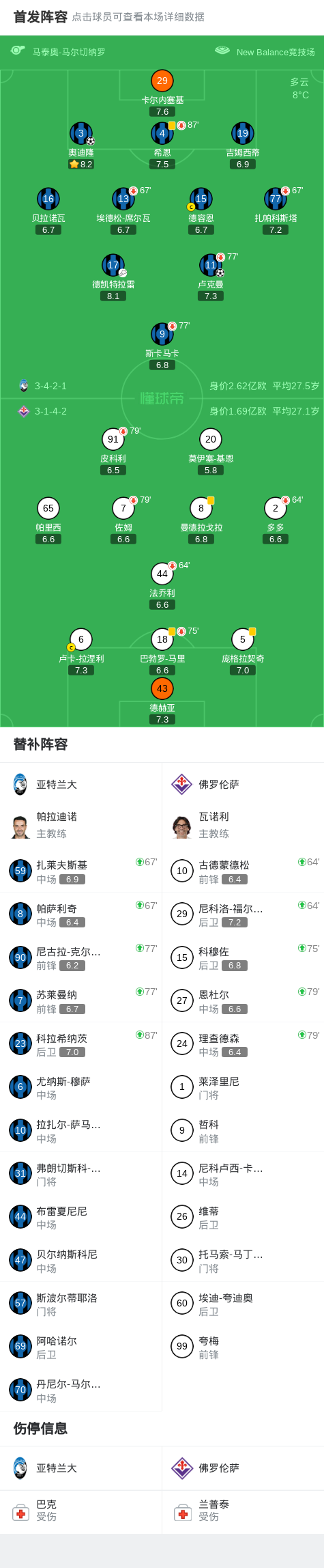 北京時(shí)間12月1日,意大利足球頂級(jí)聯(lián)賽第13輪,亞特蘭大坐鎮(zhèn)主場(chǎng)迎戰(zhàn)佛羅倫薩。比賽中,德凱特拉雷送出精準(zhǔn)助攻,幫助奧迪隆率先打破僵局。隨后,盧克曼接應(yīng)進(jìn)攻機(jī)會(huì)成功破門(mén),為球隊(duì)擴(kuò)大領(lǐng)先優(yōu)勢(shì)。憑借這兩粒進(jìn)球,亞特蘭大以2-0戰(zhàn)勝佛羅倫薩。