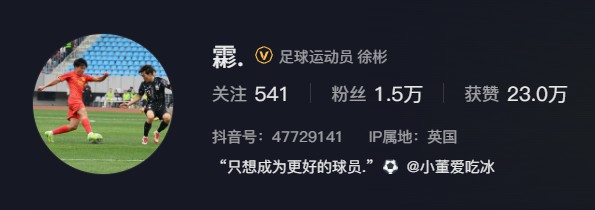 通過徐彬抖音的IP定位可以發(fā)現(xiàn),徐彬目前已經(jīng)抵達英國。