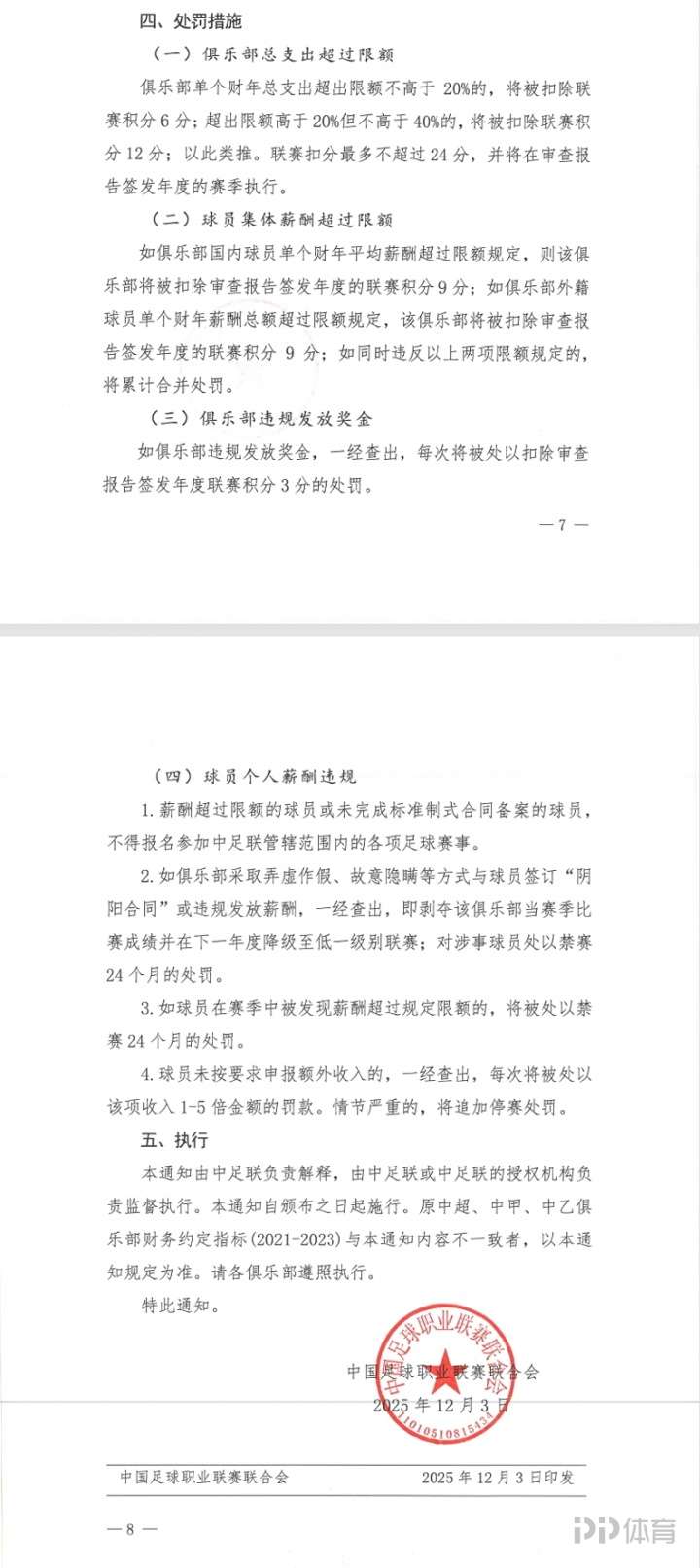 中足聯(lián)今日印發(fā)《中國(guó)足球職業(yè)聯(lián)賽俱樂(lè)部財(cái)務(wù)約定指標(biāo)的通知》,其中公布了違規(guī)的相關(guān)處罰措施。