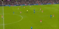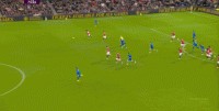 第二球,就是清晰的戰(zhàn)術(shù)準(zhǔn)備的結(jié)果,因?yàn)樵趤淼角皥龅穆飞?,你可以清晰看到是塞門約在一路跟防盧克-肖,他和身后的右后衛(wèi)在執(zhí)行嚴(yán)格的人盯人:
